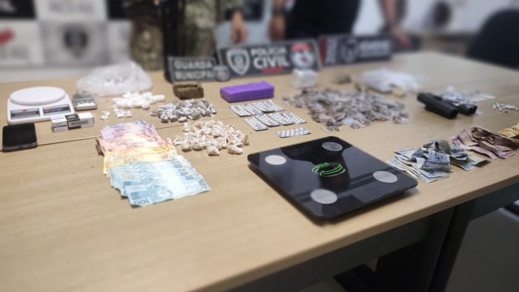 Ao todo, foram cumpridos três mandados de prisão e quatro de busca e apreensão. Drogas, dinheiro, armas e acessórios que seriam utilizados para o comércio de entorpecentes foram apreendidos. Os presos e o material apreendido foram encaminhados para a Central de Polícia, no bairro do Geisel.