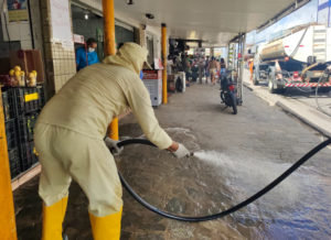 “Estamos com uma verdadeira força-tarefa, que envolve diversas secretarias fazendo esse trabalho de limpeza, de zeladoria, higienização, pulverização nos ambientes que recebem grande quantidade de pessoas. Além da segurança da população, queremos garantir, também, as condições necessárias para o uso dos equipamentos e realização das atividades de comércio”, disse Noé, durante a ação realizada no Bairro do Grotão.