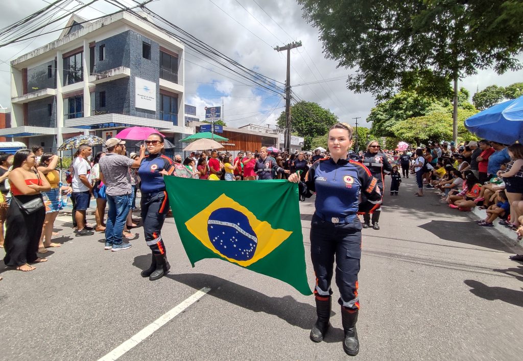 Thamires Kelly, da equipe de enfermagem do Samu, seguiu marchando na avenida segurando a bandeira do Brasil e declarando seu amor à profissão que salva vidas. “É com grande satisfação que participo do desfile. Amo minha profissão e fazer parte do Samu só me engrandece. Está aqui hoje, desfilando, faz parte da minha obrigação como enfermeira”, acrescentou.
