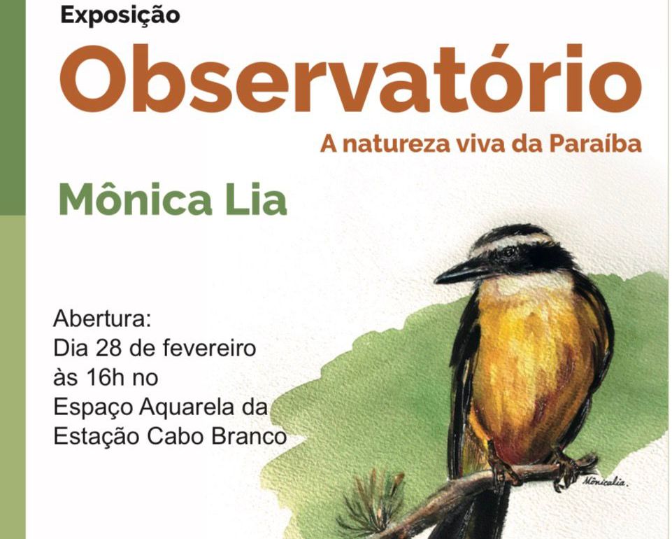 A Estação Cabo Branco – Ciências, Cultura e Artes, no bairro do Altiplano, abre suas portas, a partir deste sábado (28), para a exposição ‘Observatório’, uma imersão no universo da artista plástica Mônica Lia. A mostra estará no Espaço Aquarela, com visitação a partir das 16h, e tem a curadoria de Luciana Oliveira. São obras do acervo pessoal da artista, além de trabalhos inéditos produzidos especialmente para a ocasião.