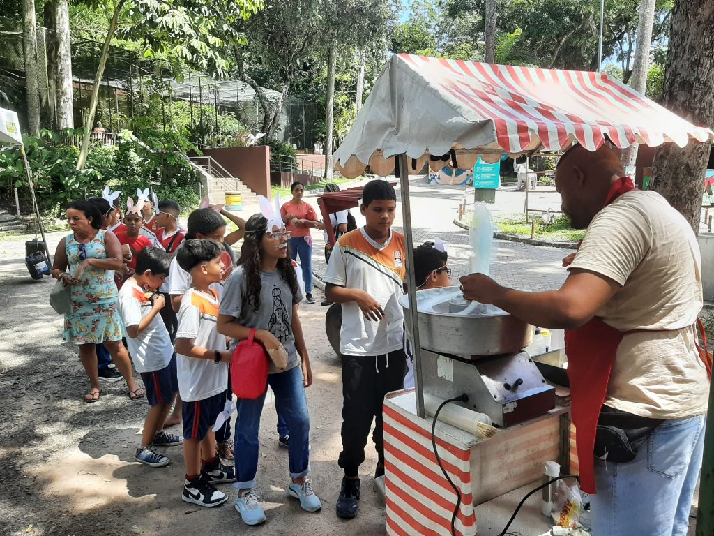 O Parque Zoobotânico Arruda Câmara (Bica) promoveu, nesta sexta-feira (11), uma manhã especial de atividades em celebração à Páscoa. A programação aconteceu em um espaço montado ao lado da fonte principal, com direito a dinâmicas educativas e momentos de lazer para as crianças.