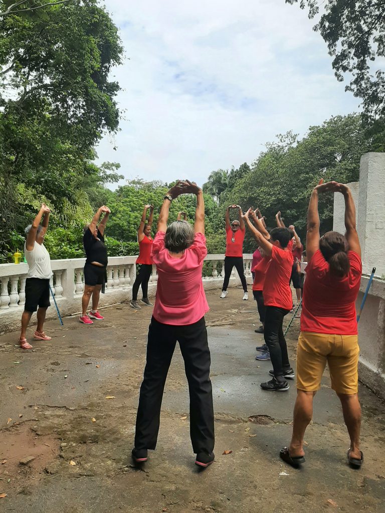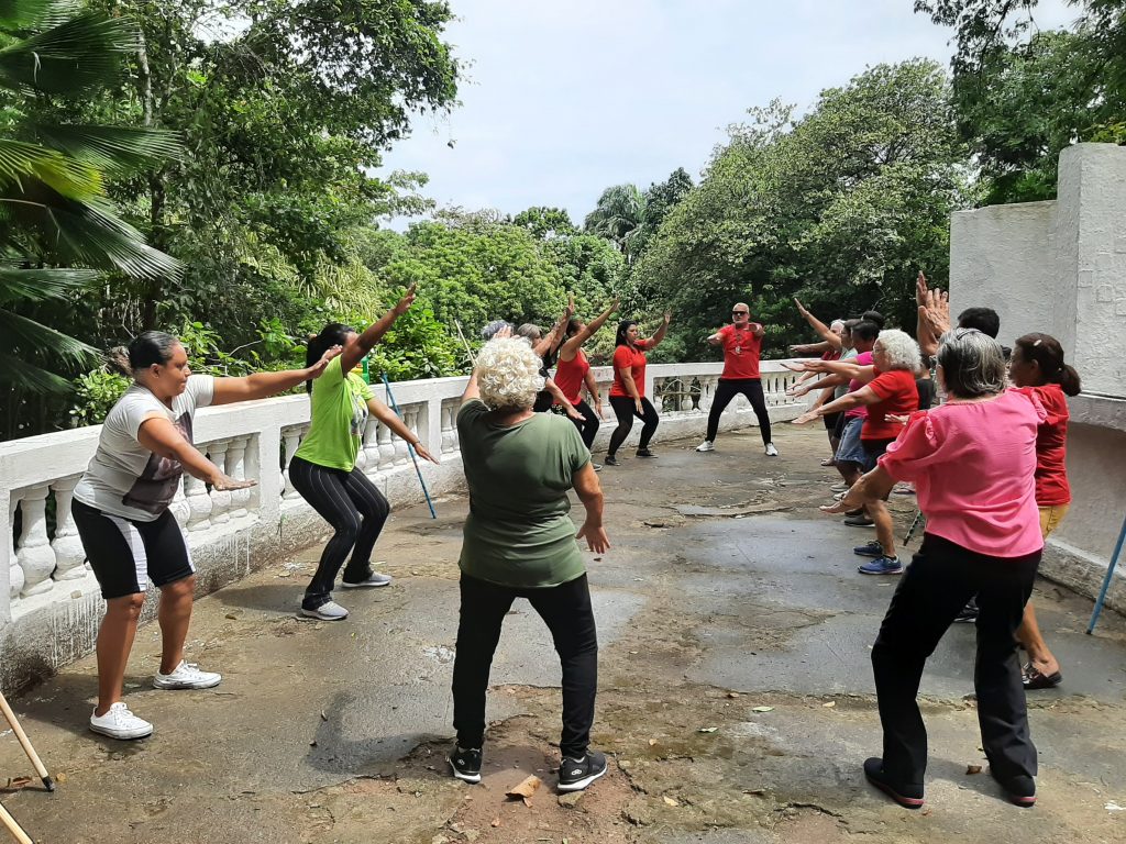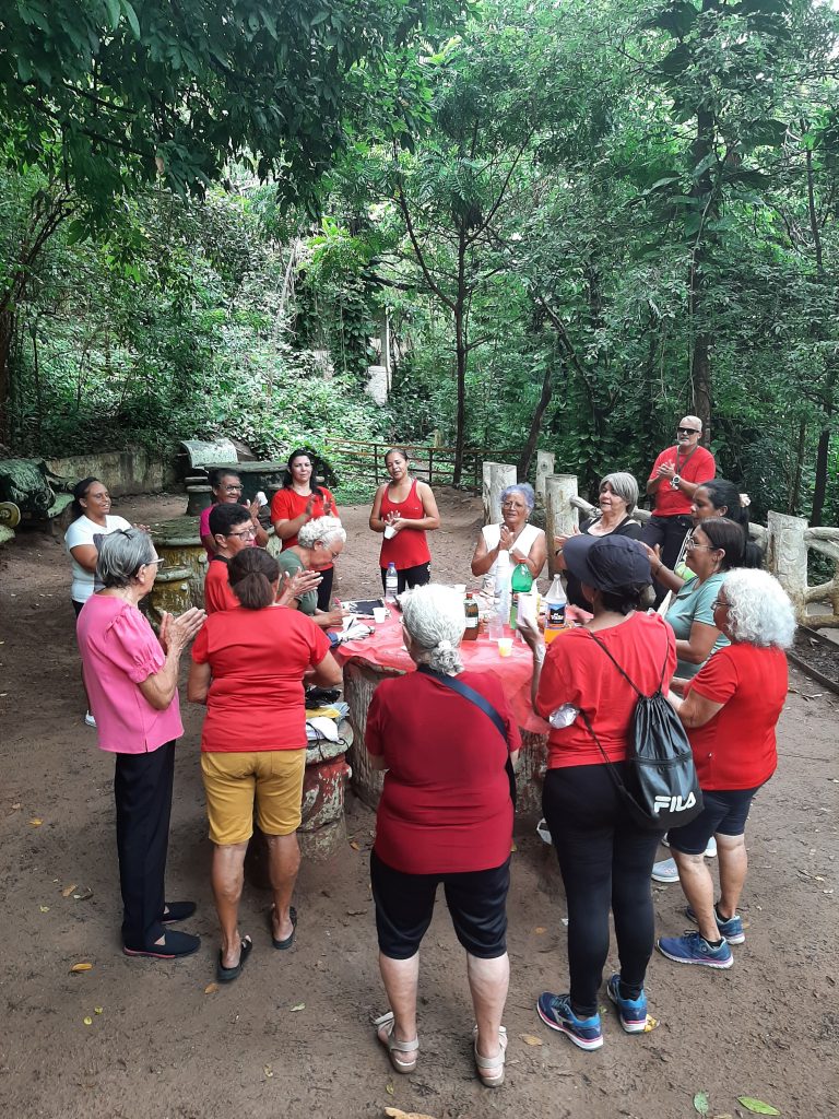 Um grupo de idosas do Centro de Referência de Assistência Social (Cras) se reuniu para prática de exercícios físicos e uma calorosa confraternização no Parque Zoobotânico Arruda Câmara – Bica. Foi na manhã desta quinta-feira (21). O encontro teve como pano de fundo a beleza natural do parque, proporcionando um ambiente acolhedor e festivo.