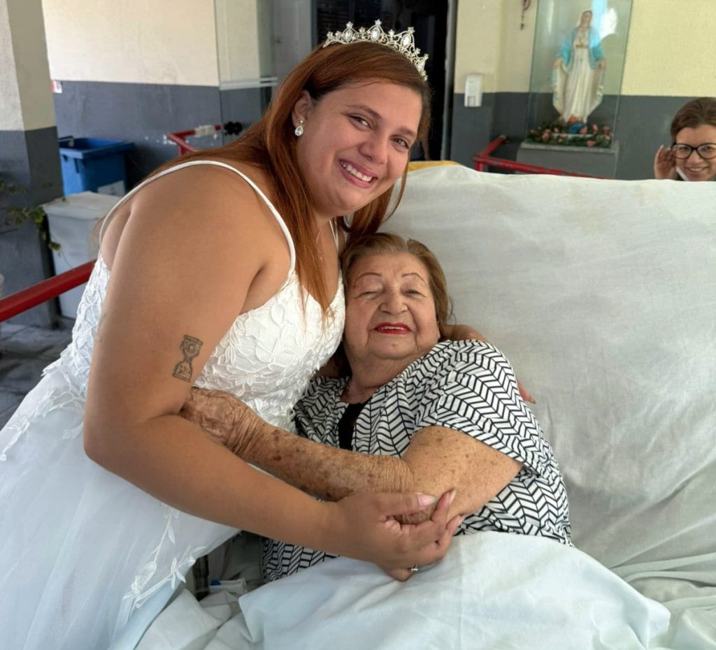 A visita comoveu todo o corpo clínico do hospital, além de outros pacientes, mas para dona Maria de Loudes, o momento ficará para sempre na memória. “Estou feliz demais em ver minha nega vestida de noiva, ela é o amor da minha vida e esse sempre foi um sonho nosso. Apesar de não poder estar no casamento, saber que ela vai casar e receber a visita dela antes desse momento foi muito especial. Estou feliz e realizada e muito grata a todos que fizeram esse momento acontecer”, contou a paciente.
