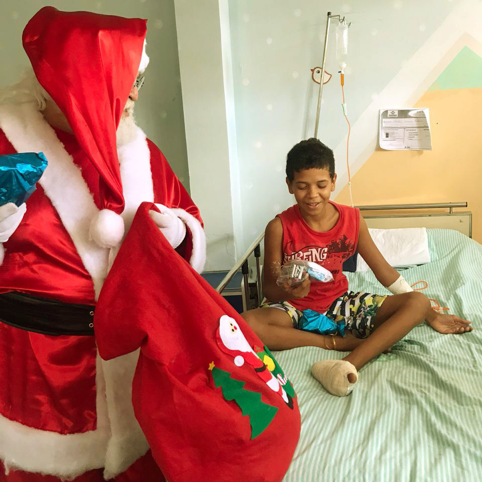 O Papai Noel chegou mais cedo ao Complexo Hospitalar de Mangabeira Governador Tarcísio Burity (Ortotrauma). Na tarde dessa quarta-feira (19), o “bom velhinho” visitou todos os 200 pacientes internos da unidade, entre adultos e crianças, e os presenteou com kits de higiene pessoal e brinquedos.