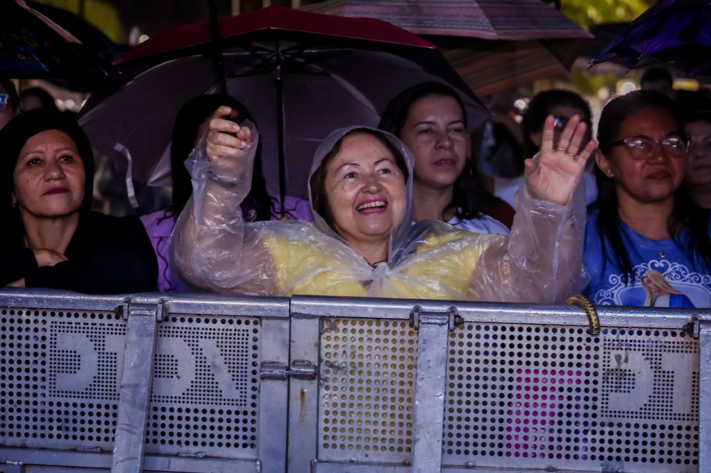 O Padre Márcio levou um quadro com músicas católicas no ritmo de São João, de forró e de xote. Depois, em outro bloco, cantou músicas conhecidas em seus ritmos originais. “Fizemos um Louvor das Neves, levando ao coração de cada um a mensagem de Nossa Senhora, aquela que faz descer o orvalho das bênçãos de Deus. Esta chuva foi só a cereja do bolo porque Nossa Senhora faz chover a neve sobre o povo como uma bênção nesta noite especial para o povo de Deus”, pontuou.