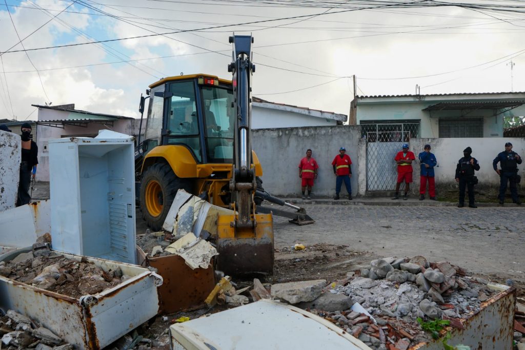A primeira desobstrução ocorreu na Rua Professor Inácio Serrano de Andrade, no bairro Treze de Maio. No local, estruturas erguidas de forma clandestina vinham sendo utilizadas como instrumento de controle territorial, dificultando o acesso de moradores, veículos de emergência e forças públicas.