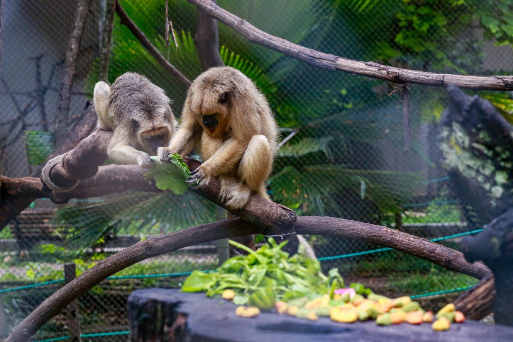 Marília Maia citou como exemplo o recinto das aves, da ilha dos macacos prego e dos macacos bugios, que são animais que vivem no alto, nas copas das árvores. “Pensando nessa condição dos bugios no recinto foram usados troncos, poleiros que são fixos e outras partes que são móveis instaladas na parte superior para que eles se pendurarem, como os pneus. Além disso, tem sempre água disponível no recinto e uma parte de mata que, de vez em quando, limpamos e depois deixamos crescer novamente”.