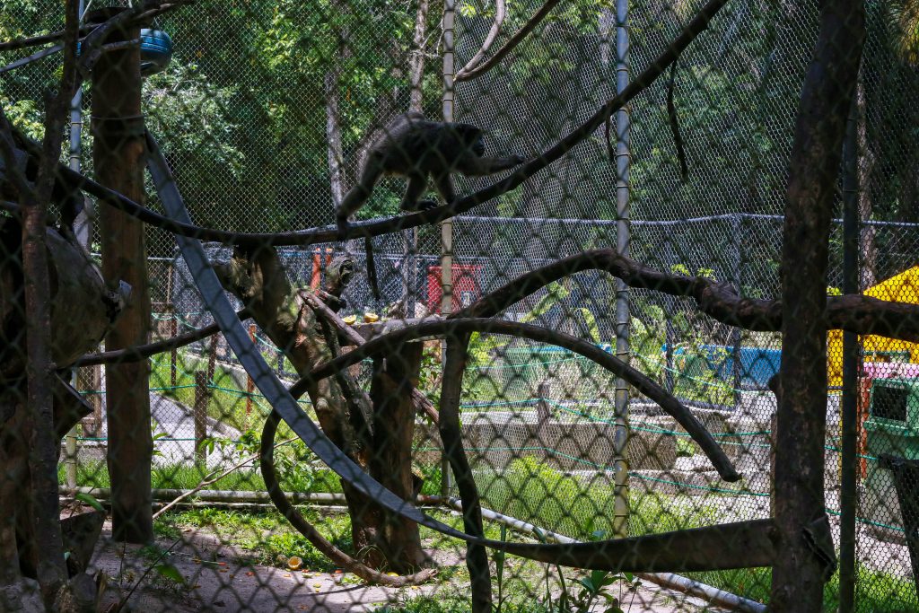 A bióloga Helze Lins ressaltou que todos os recintos contam com uma área de cambiamento que serve para manter os animais presos durante a limpeza da área externa, servindo também como abrigo e local de repouso para os bichos.