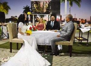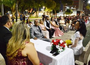 A cerimônia religiosa aconteceu na Praça do Esplanada e, emocionado, o noivo Josemir Miranda, de 57 anos, revelou os motivos para escolha do local. “Esse espaço é maravilhoso, pois envolve toda essa beleza da natureza e com certeza foi uma excelente