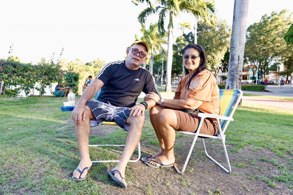 Já o motorista Jorge Ferreira e a agente administrativa Marinalda Rozendo, casados há 40 anos, frequentam o parque para relaxar no final de tarde. Eles moram em Bayeux, Grande João Pessoa, trabalham na Capital e aproveitam para dar uma relaxada no final do dia. “Sempre estamos aqui todos os dias, neste mesmo local, neste mesmo horário para tomar um cafezinho e curtir a brisa. A gente já deixa as cadeiras dentro do carro e fica aqui conversando, matando o tempo e tirando fotos”, disse ela. Ele também gosta de curtir a programação cultural. “A gente gosta de caminhar e também vir aos shows na época de São João”.