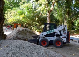 Esse ano, devido ao entulho resultante da obra de revitalização que está acontecendo no Parque, a Secretaria de Meio Ambiente (Semam) está fazendo uso de uma máquina chamada ‘Bobcat’, que tem vários implementos, como uma vassoura mecânica e um triturador de palhas e galhos, que facilitam o trabalho de limpeza, agilizando a varrição da extensa área do local, como também para o reaproveitamento do material orgânico, restante das sobras de podas, que está sendo utilizado para compostagem e adubo das plantas da área.