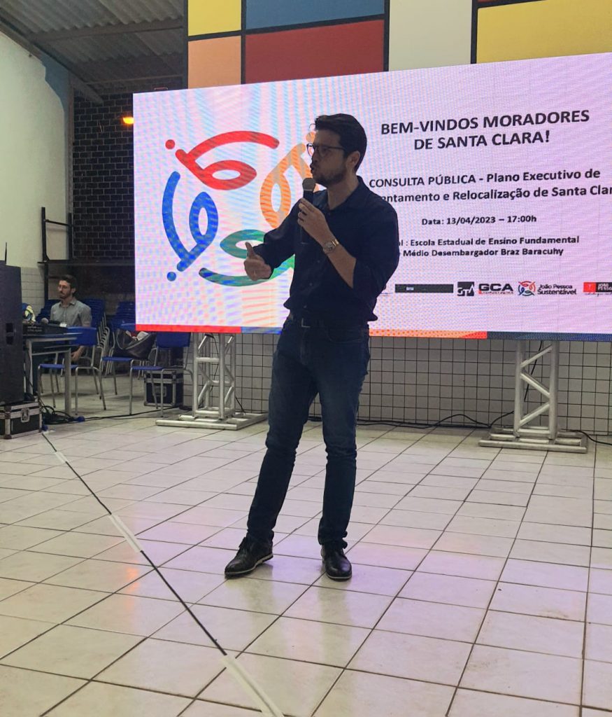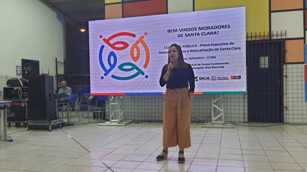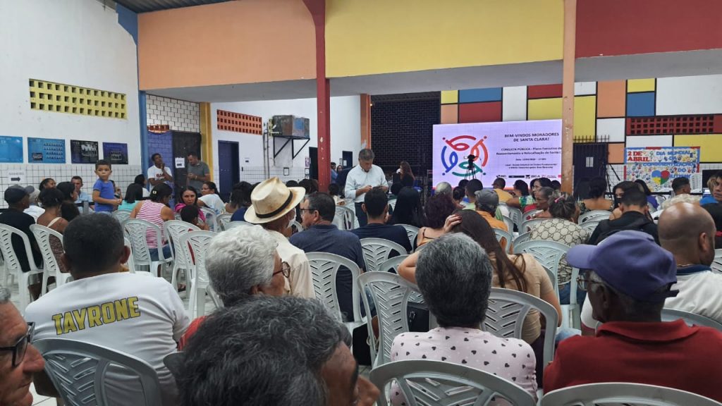 Transparência, diálogo e participação popular marcaram a primeira Consulta Pública da Comunidade Santa Clara realizada, na noite desta quinta-feira (13), na Escola Estadual Desembargador Braz Baracuhy, no Castelo Branco. Mais de 150 moradores acompanharam de perto a apresentação do Plano Executivo de Reassentamento e Relocalização (PERR) que integra o Plano de Desenvolvimento Comunitário (PDC) do território, e puderam participar com perguntas e sugestões.