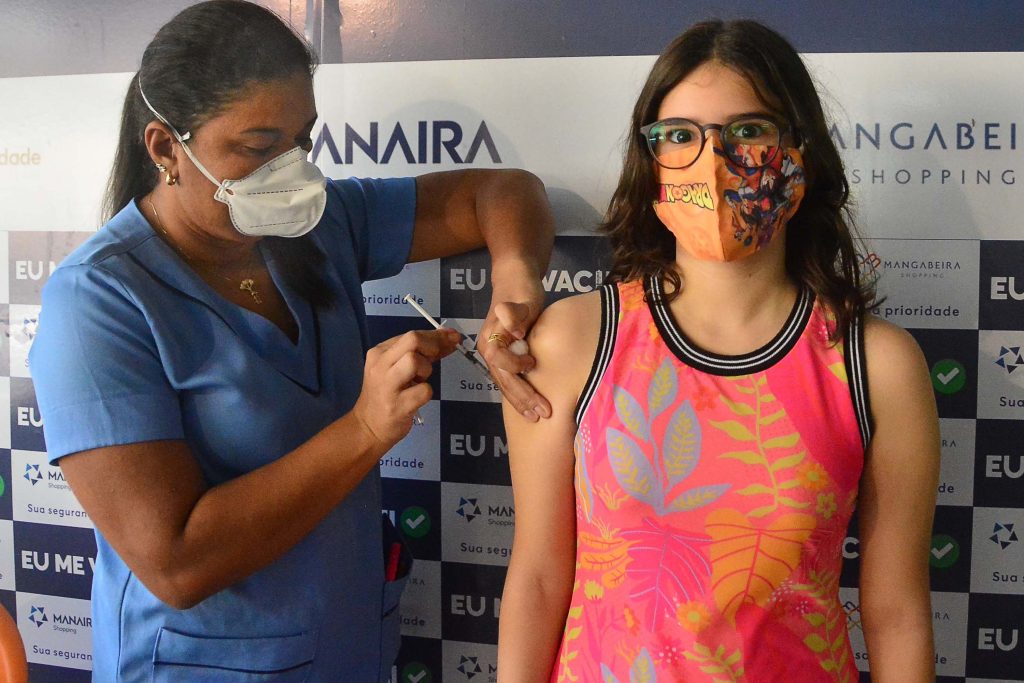 Assim como Valesca, outras pessoas viram no Dia D a oportunidade para atualizar a imunização. Foi o caso da psicopedagoga Laís Cavalcanti. Ela estava com a filha Clarissa no ponto do Shopping Mangabeira para tomar a dose da Covid-19 e da febre amarela.