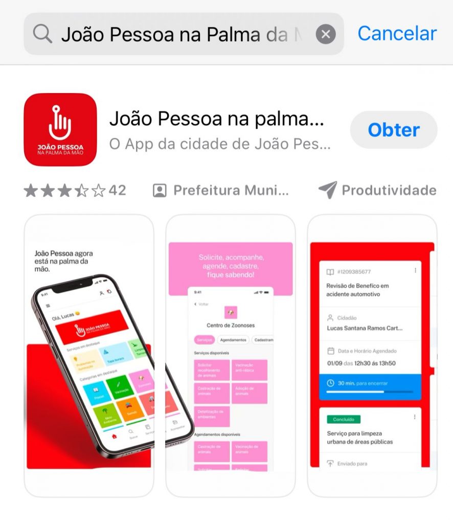 Aplicativo – O app João Pessoa na Palma da Mão é compatível com smartphones que usam sistema operacional Android e IOS e pode ser baixado nas lojas de aplicativos Google Play e/ou App Store.