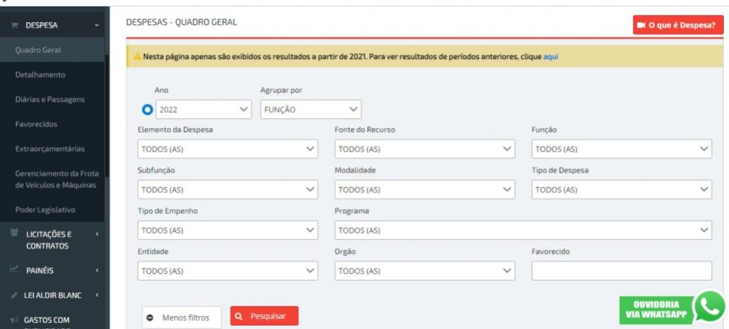De acordo com a Técnica Municipal de Controle Interno, Juliana Vaz, esta aba proporciona transparência com os gastos públicos e fomenta o controle social. “Nesta aba o cidadão encontra informações de despesas separadas por tipologias e períodos, ou seja, são ferramentas que ampliam o controle social, pois disponibilizam os dados de forma organizada, facilitando o acesso e a análise pelo cidadão”, explicou.