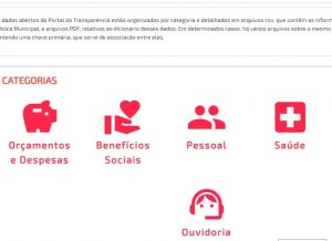 Em novembro do ano passado, a página de Dados Abertos passou por uma reformulação para facilitar a navegação do usuário. Na ocasião, foi feita a categorização dos dados e a página inicial passou a disponibilizar os ícones das categorias de dados abertos e, ao clicar nestes ícones, o usuário é direcionado para outra página contendo a listagem das informações disponíveis.