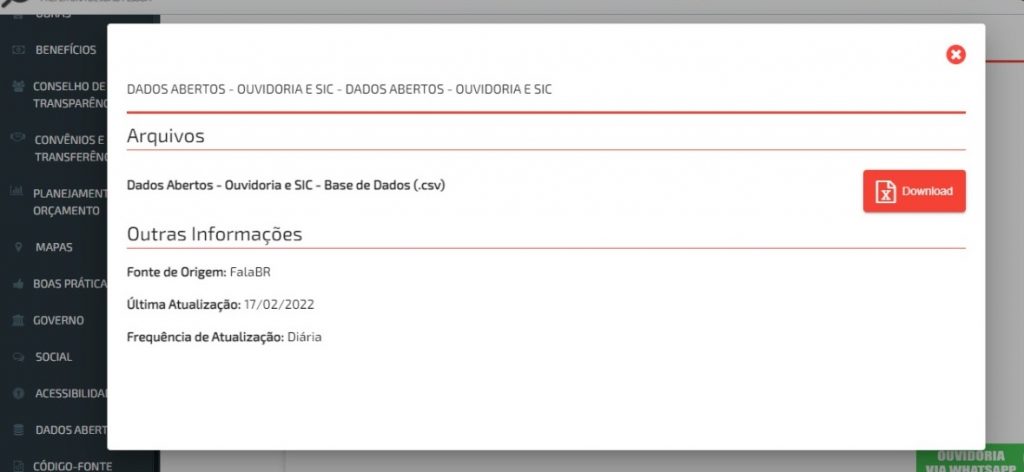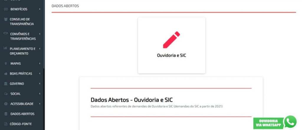 De acordo com a técnica de controle interno, Juliana Vaz, com a inserção da Categoria ‘Ouvidoria e SIC’ na aba ‘Dados Abertos’ do Portal da Transparência, o cidadão passa a ter acesso às demandas de Ouvidoria e de SIC, a partir de 2021, em formato aberto. “Os dados das demandas, cuja fonte de origem é o sistema Fala.BR, podem ser baixados em planilhas (formato CSV), que é um formato que pode ser aberto por qualquer pessoa. Na planilha, o usuário tem acesso a diversas informações relativas às demandas, como situação, assunto e canal de entrada”, explicou.