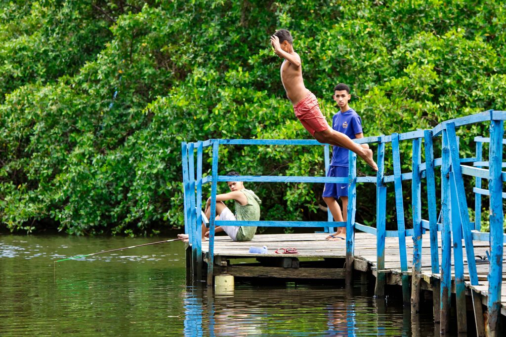 Ele se refere a passarela de madeira ‘Território Ribeirinha’, usada para atracar barcos de pesca locais e de passeio, além de ponto de partida para a procissão fluvial pelo rio Sanhauá, que segue para a capela de Nossa Senhora da Conceição, realizada pelos moradores no mês de dezembro. É também local de visitação para o turismo de experimentação e usado pelos jovens para saltar no rio.
