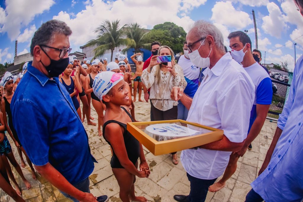 O projeto Campeões do Amanhã, que insere crianças da Rede Municipal de Ensino na prática esportiva, apresentou os primeiros resultados em sua retomada. Na manhã desta quarta-feira (20), um grupo de 100 alunos que se destacaram nas aulas de natação realizaram uma apresentação dos quatro estilos de nado. O momento, presenciado pelo prefeito Cícero Lucena e pelo vice-prefeito Leo Bezerra, também marcou o lançamento oficial do programa.