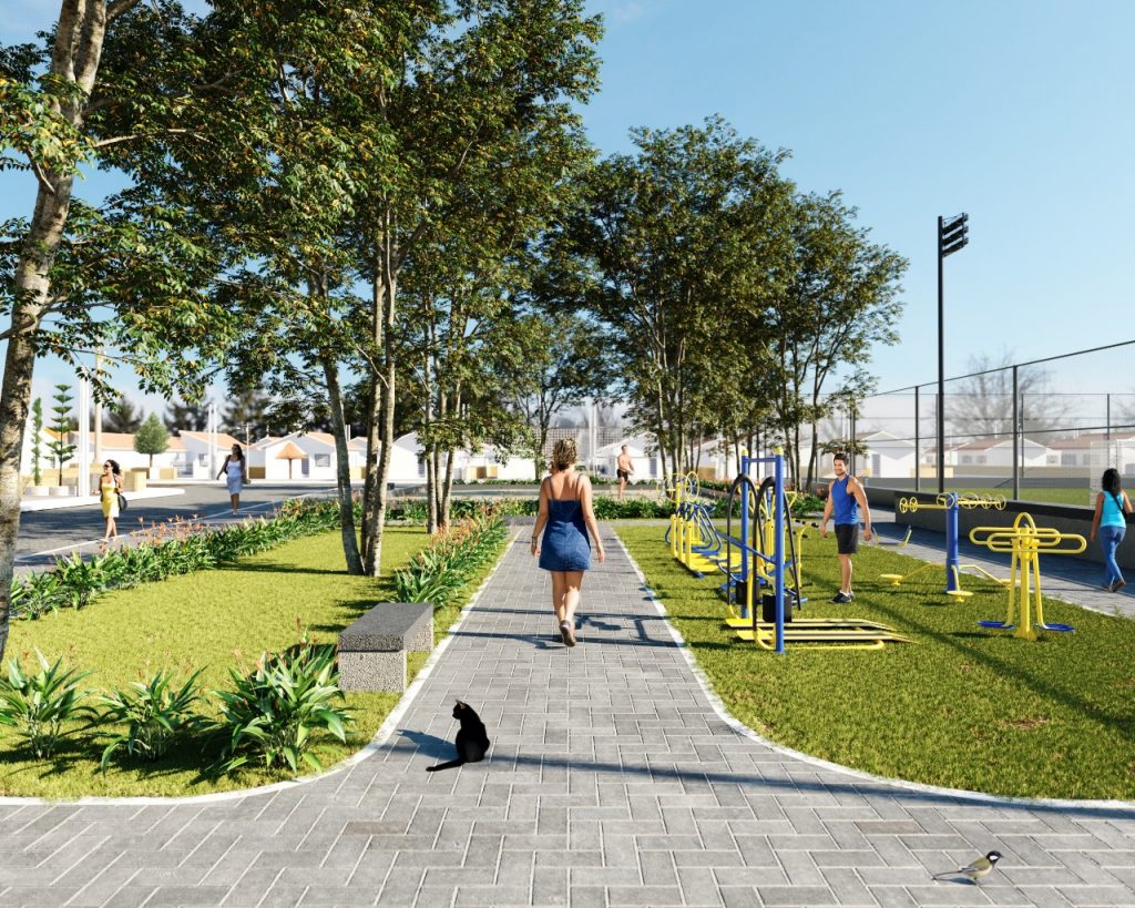 “Além da estrutura do complexo esportivo, também vamos pavimentar todas as ruas no entorno com o padrão dessa gestão com calçadas padronizadas, drenagem e acessibilidade. A gente espera voltar aqui em seis meses para fazer a entrega desse equipamento”, falou o secretário de Infraestrutura, Rubens Falcão.