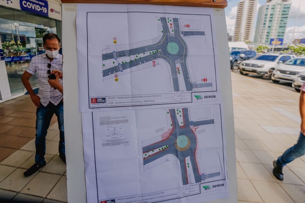Um dos pontos de maior retenção de tráfego no bairro do Bessa vai passar por intervenção estrutural. Trata-se da rotatória localizada no encontro das ruas Francisco Leocádio Coutinho e José de Oliveira Curchatuz. A obra vai garantir faixas de passagem livre em todos os sentidos de circulação, o que vai possibilitar um menor acúmulo de veículos na rotatória.