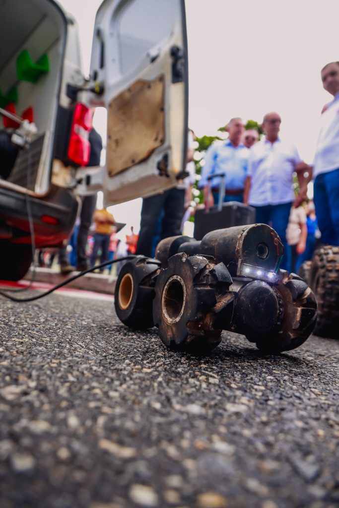 O secretário de Infraestrutura (Seinfra), Rubens Falcão, explicou como os equipamentos vão funcionar, aliando precisão e eficiência. “O robô vai entrar nas galerias, identificar alguma obstrução, o diâmetro, vai nos auxiliar a fazer a planta geral da drenagem. Além de detectar obstrução na rede, que vai nos direcionar exatamente aquele local para que a gente não saia quebrando as galerias de forma desnecessária”, iniciou o secretário.