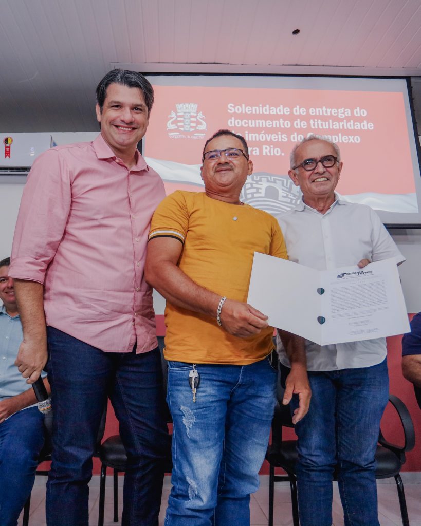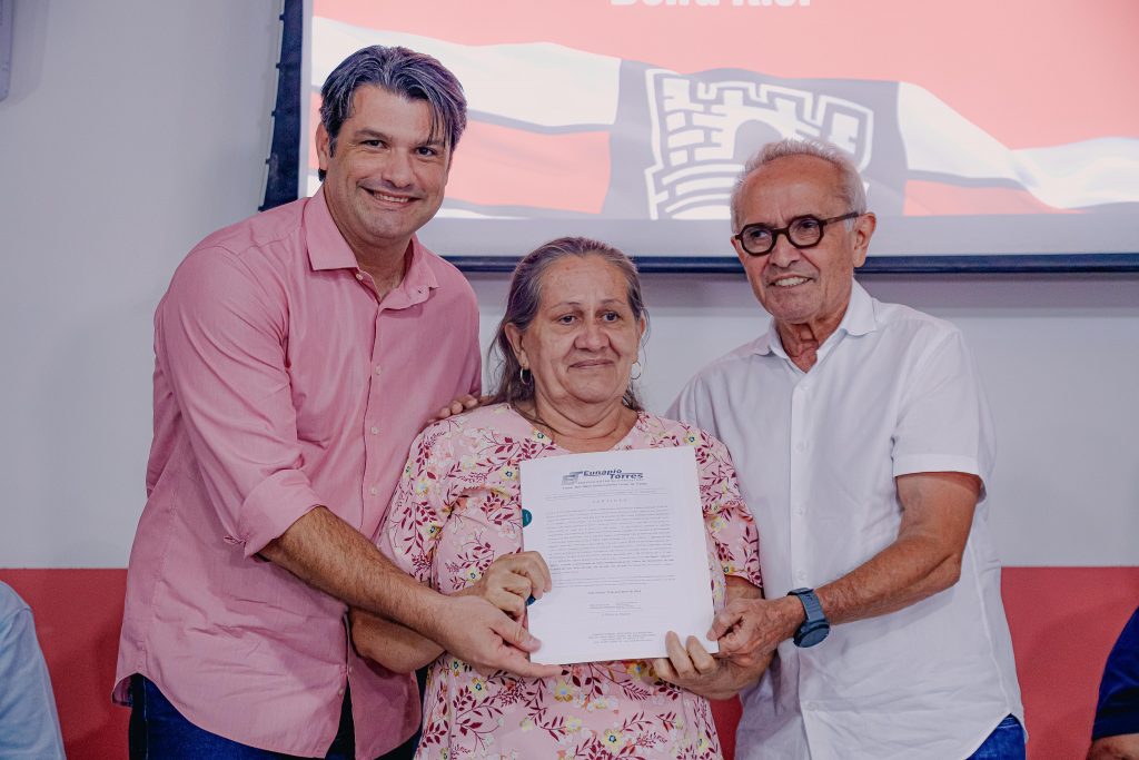 O prefeito Cícero Lucena entregou, nesta terça-feira (7), os documentos de titularidade de imóveis para dez famílias da comunidade do Miramar, como parte do processo de regularização fundiária promovido pelo Programa ‘João Pessoa Sustentável’. O evento, que foi realizado no Clube da Pessoa Idosa, no bairro do Altiplano, também marcou a entrega de mais 12 imóveis de Compra Assistida para famílias de áreas de risco, totalizando 62 unidades.