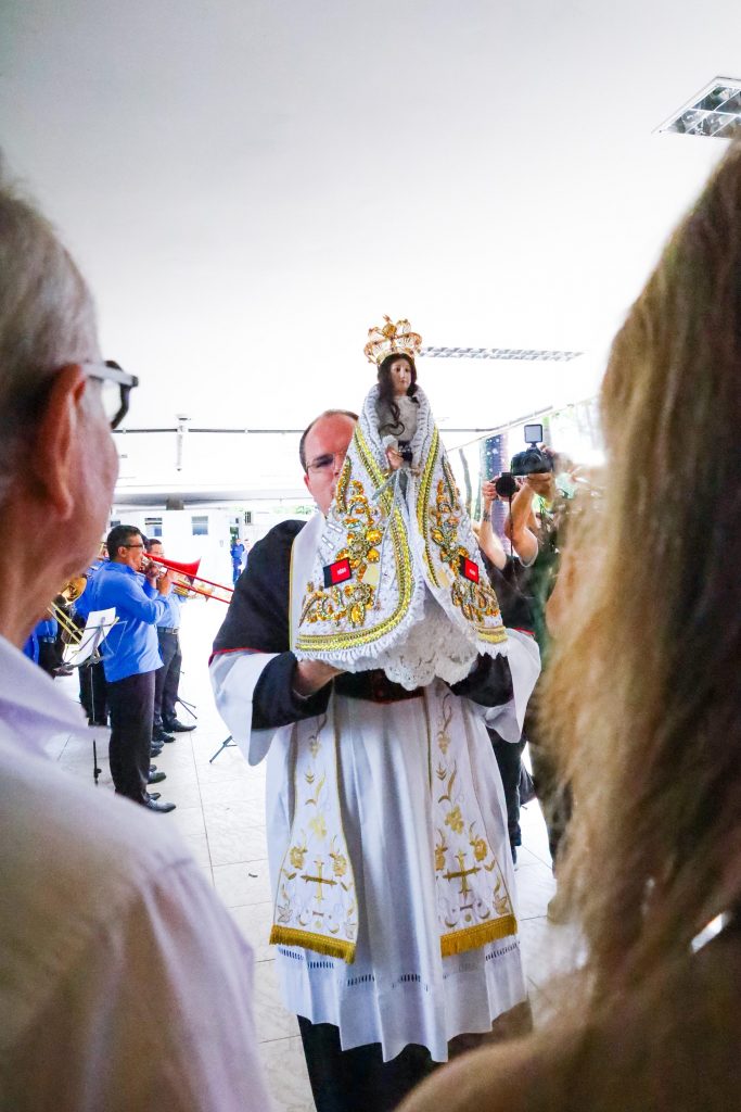 celebração religiosa imagem de Nossa Senhora das Neves imagem de Nossa Senhora das Neves no CAM Padre Allan Karlos da Silva Melo padroeira de João Pessoa prefeito Cícero Lucena primeira-dama Lauremília Lucena procissão nos corredores do CAM programação religiosa
