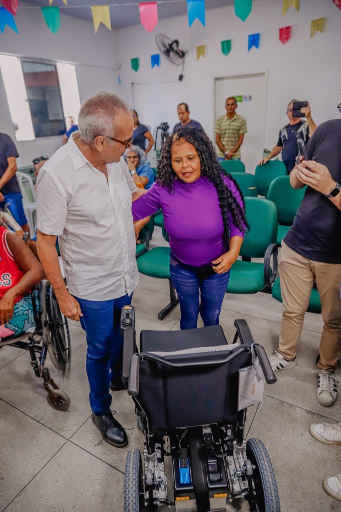 O prefeito Cícero Lucena entregou, nesta terça-feira (11), 48 cadeiras – 28 elétricas e 20 monobloco – aos usuários atendidos pelo Centro de Reabilitação da Pessoa com Deficiência, em Jaguaribe. Os equipamentos só eram adquiridos anteriormente por meio de demanda judicial, mas que se tornaram possíveis pelo olhar humano da atual gestão, que adquiriu unidades para atender, de forma individualizada, às necessidades de cada pessoa.