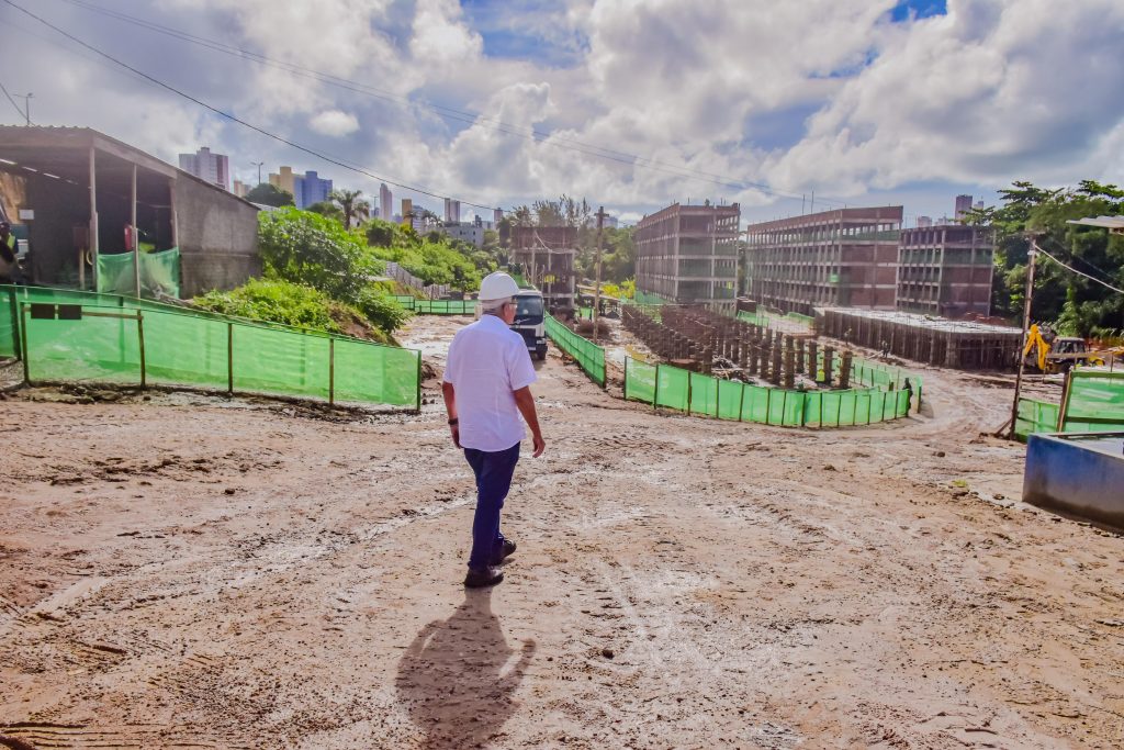 O prefeito Cícero Lucena inspecionou, nesta terça-feira (16), as obras de construção do Complexo Beira Rio – empreendimento habitacional que a Prefeitura de João Pessoa está construindo em parceria com o Banco Interamericano de Desenvolvimento (BID), que deve ser concluído em 12 meses e que vai beneficiar mais de 700 famílias que moravam em áreas de risco da Capital. O gestor municipal pontuou que a obra garante, além de moradia digna, infraestrutura de equipamentos sociais e que a gestão segue acompanhando as famílias até que recebam seus novos apartamentos.