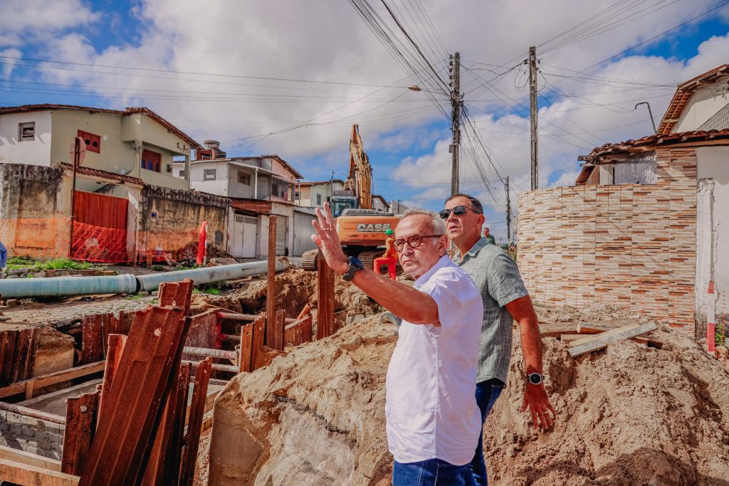 Com obras já iniciadas, a Prefeitura de João Pessoa vai dar solução aos alagamentos que afetam os moradores do Conjunto Esplanada há décadas. Nesta quinta-feira (13), o prefeito Cícero Lucena inspecionou os trabalhos que estão sendo executados pela Secretaria de Infraestrutura (Seinfra), avançando na escavação para, em seguida, a instalação de tubulações de 1.500 milímetros em PAD. O projeto ainda prevê uma travessia para lançamento das águas no Rio Jaguaribe, às margens da BR-230.