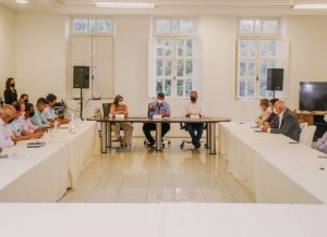 O prefeito interino Dinho Dowsley se reuniu, no final da tarde desta quarta-feira (10), com os vereadores da Capital. Na pauta do encontro, as emendas impositivas para a Lei Orçamentária Anual (LOA) referente ao ano de 2022. A reunião aconteceu no Paço Municipal.