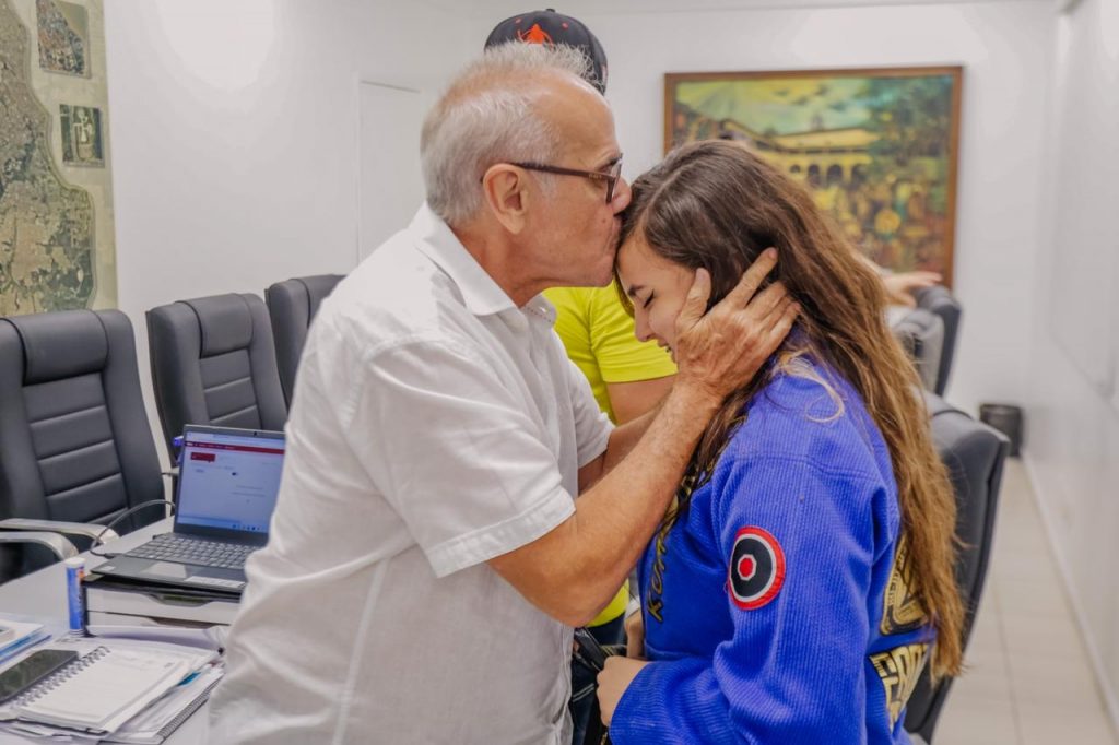 O prefeito Cícero Lucena recebeu, na manhã desta quarta-feira (14), em seu gabinete, em Água Fria, a visita de quatro medalhistas de ouro do Campeonato Sul-Americano de Jiu-Jitsu Criança 2022. O evento aconteceu no Rio de Janeiro, no último mês de agosto, e viu todos os atletas pessoenses no lugar mais alto do pódio em suas categorias. Eles viajaram com apoio da Prefeitura da Capital e se reuniram com o gestor para agradecer o suporte dado.