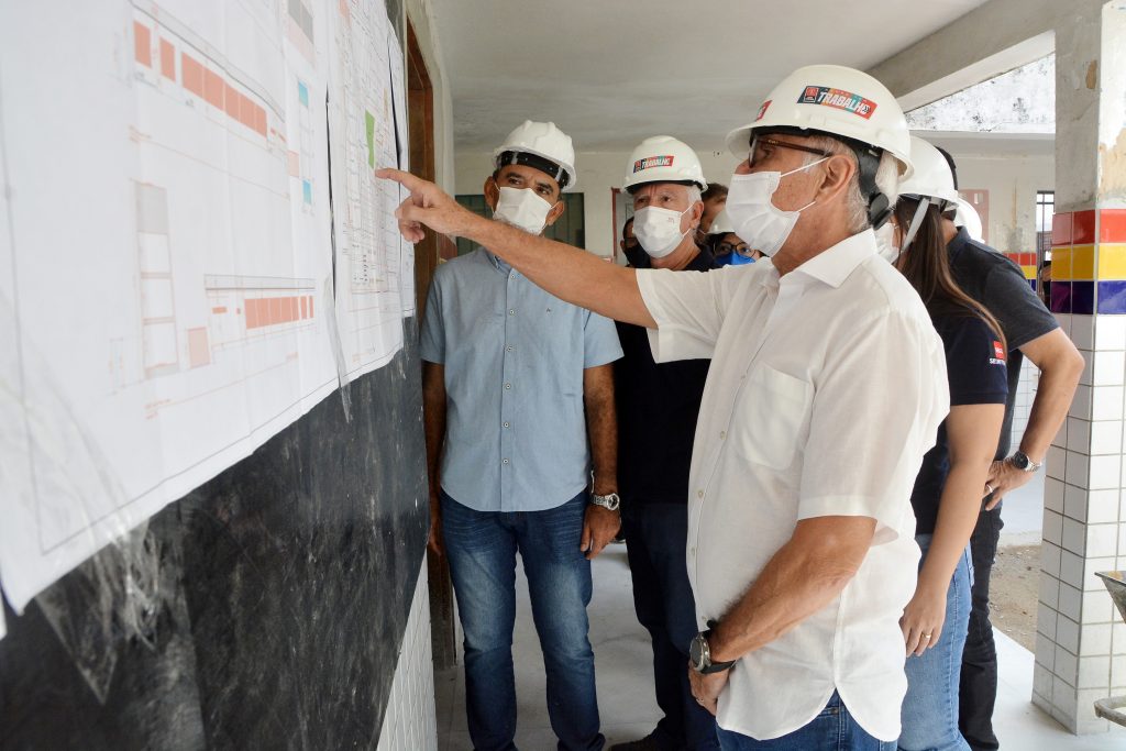 Vistoria – A agenda do prefeito teve continuidade com a visita ao canteiro de obras das escolas Luiza Lima Lobo e Severino Patrício, ambas no Alto do Mateus. A escola Luiza Lobo atende a 600 estudantes da Educação Infantil e Fundamental I. Já a Severino Patrício conta com cerca de 300 alunos do Ensino Fundamental e EJA.