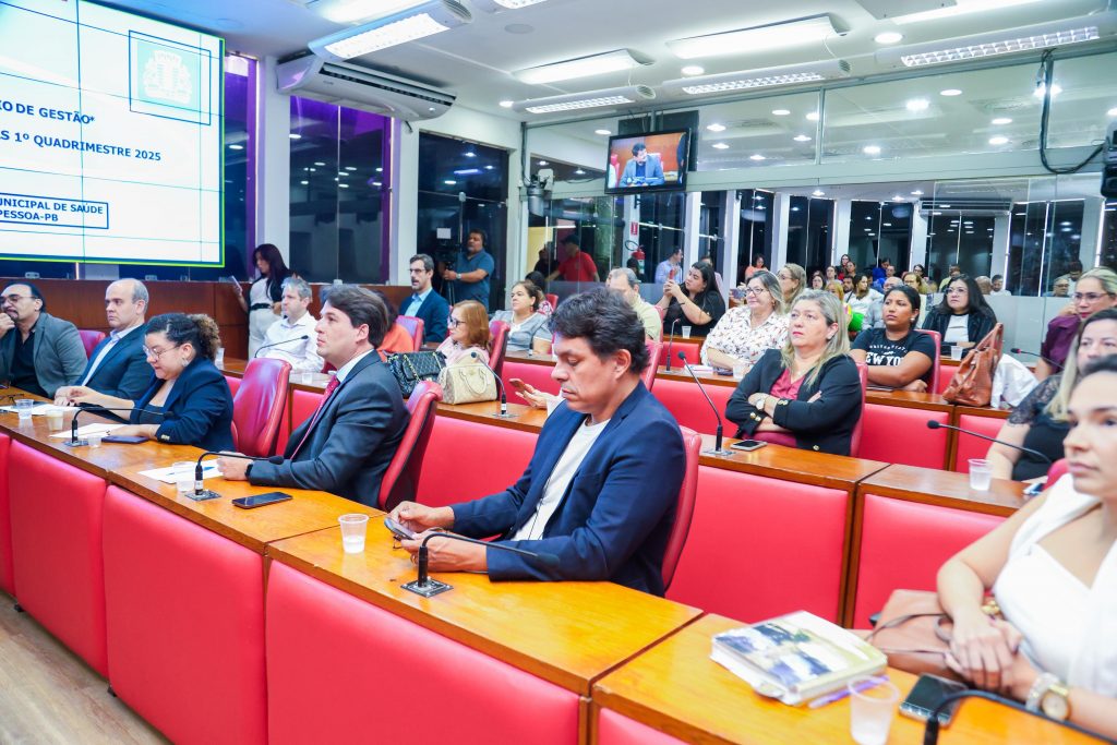 A audiência pública na Câmara Municipal de João Pessoa para prestação de contas da Secretaria de Saúde do Município contou com a presença de vereadores e de servidores da Rede Municipal de Saúde.
