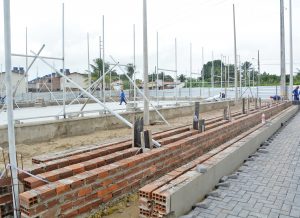 No momento estão sendo executados a concretagem da pista de cooper, assentamento de meio-fio, do piso intertravado e da arquibancada. A obra já está 50% concluída e a previsão de término é para julho.