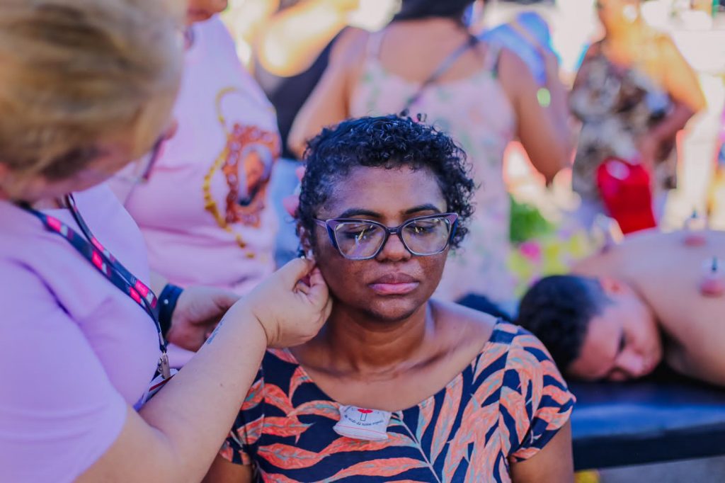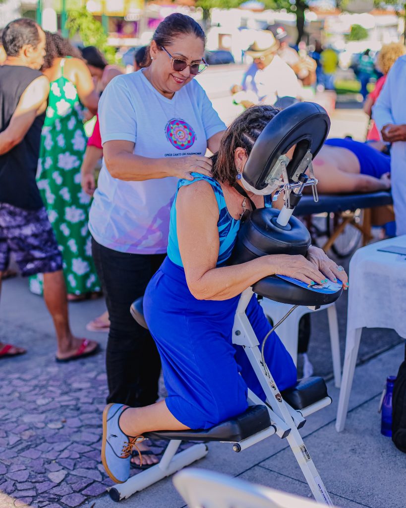 Na área das práticas integrativas, foram ofertadas massoterapia, ventosaterapia, chá medicinal, auriculoterapia e reiki. A van odontológica da SMS realizou seus atendimentos com os mesmos serviços que são disponibilizados na Atenção Básica, como extrações e restaurações dentárias, limpezas, aplicação de flúor, entre outros.