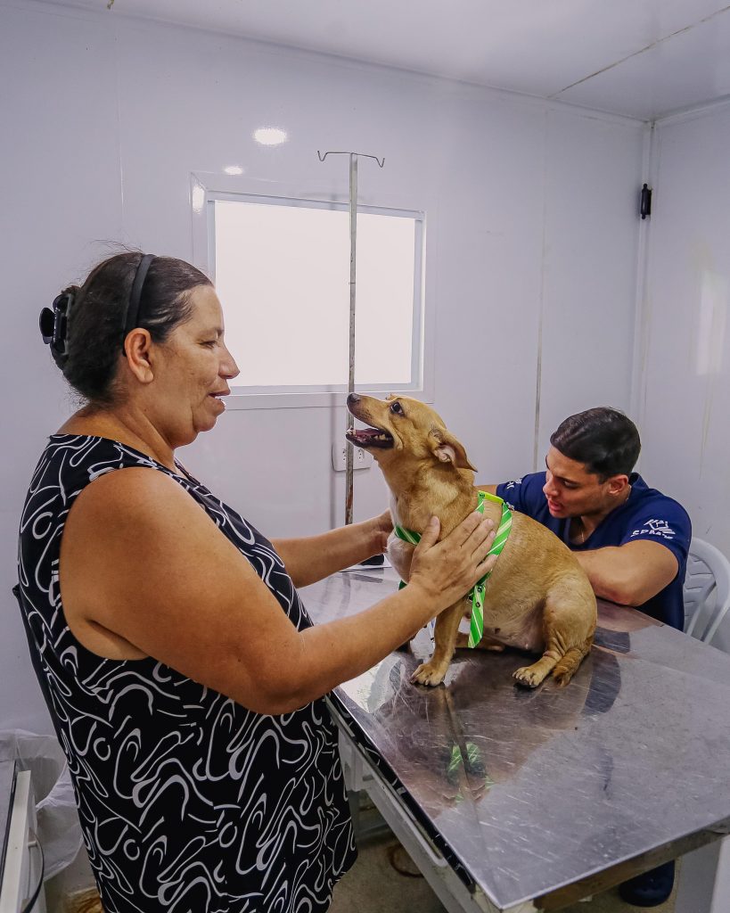 O Castramóvel, equipamento da Prefeitura de João Pessoa, coordenado pela Semam, esteve presente ao Circuito Comunidade com agendamento de castração e acompanhamento e análise clínica de cães e gatos. A usuária Rita de Cássia, residente em Mangabeira, levou seu cão para uma avaliação da pele do animal. “Agendei e fiz uma consulta aqui mesmo no Castramóvel, pois meu cachorro está com algumas manchas e é bom um veterinário acompanhar para ver o que é pois, dependendo do resultado, vamos fazer os encaminhamentos necessários”, afirmou a tutora.