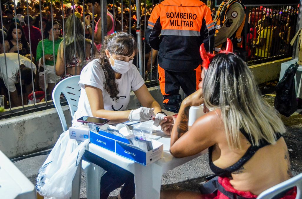 Saúde – A Secretaria Municipal de Saúde (SMS) atuou em diversas frentes de trabalho no bloco Virgens de Tambaú. A SMS disponilbilizou testagens para detecção de HIV, sífilis e hepatites, distribuição de preservativos masculino e feminino, através da Vigilância em Saúde, e realizou o serviço de atendimento de urgência e emergência, por meio do Samu. “As equipes da saúde estão recebendo vários elogios, vindos por consequência do trabalho desse mutirão de profissionais, dispostos e prontos para atender os foliões no que eles venham necessitar no tocante aos serviços de saúde”, exaltou Alline Grisi, diretora de Atenção à Saúde da SMS.