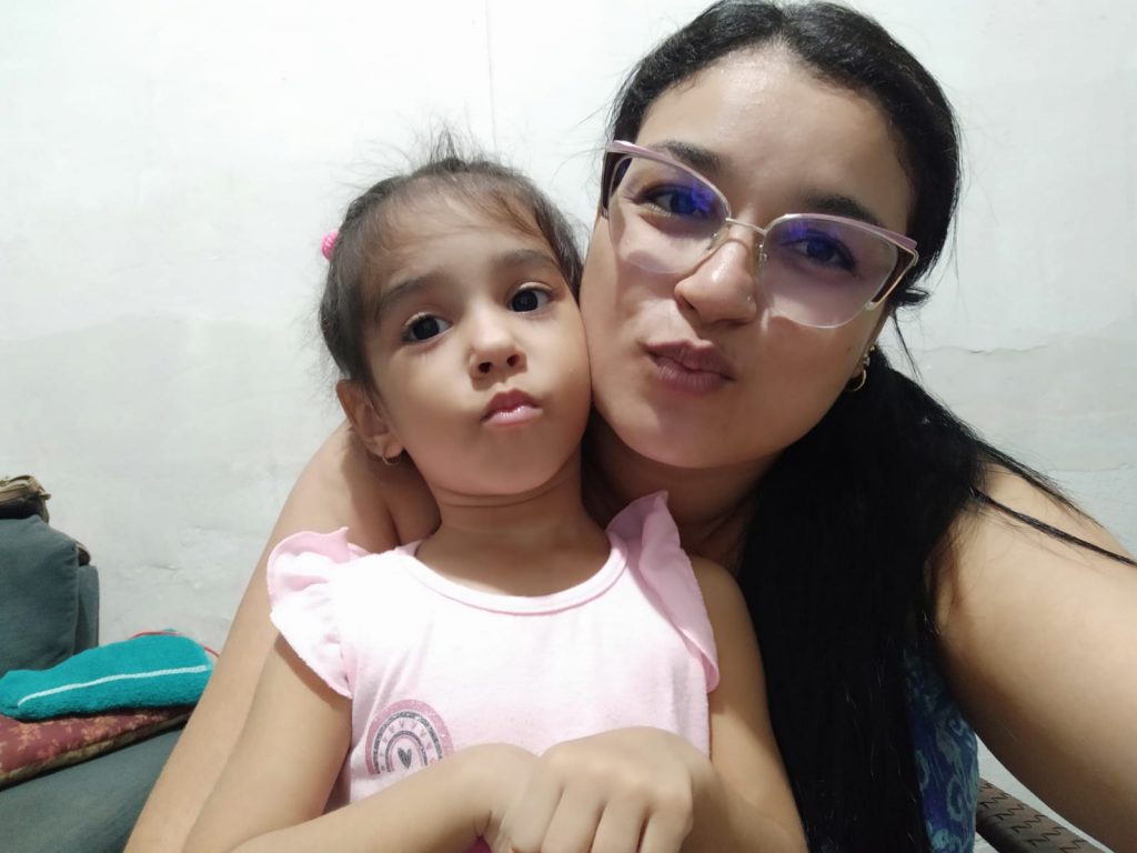 A autônoma Laura Regina Cavalcanti de Albuquerque, que é mãe de Luara Tereza, de 2 anos e 11 meses, trabalha com a revenda de moda íntima. Ela deixa a filha diariamente no Centro Municipal de Educação Infantil (CMEI) – Amiguinhos, no bairro do Roger, desde que a pequena tinha 1 ano e 4 meses.