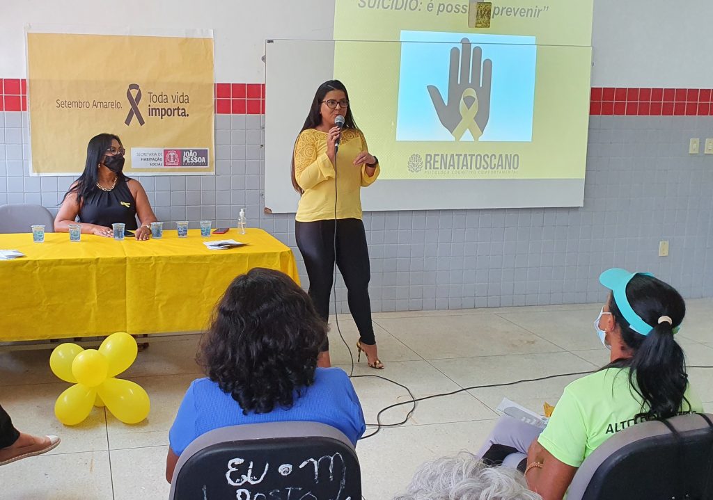 A Prefeitura de João Pessoa, por meio da Secretaria Municipal de Habitação (Semhab), encerrou, nesta quinta-feira (30), a programação alusiva à campanha ‘Setembro Amarelo’. Nesta manhã, os moradores dos residenciais Vista do Verde I e II assistiram a uma palestra sobre saúde mental. O evento aconteceu no auditório da Escola Municipal Linaldo Cavalcanti, no bairro das Indústrias, e teve como finalidade orientar as pessoas sobre como procurar orientação junto aos serviços de saúde oferecidos pela rede municipal.