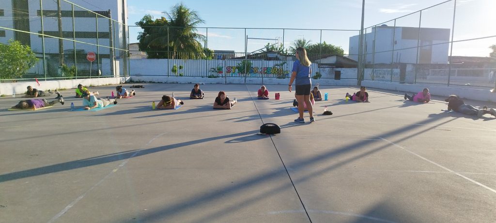 Diariamente, a educadora se dedica a suas turmas, que reúnem em média de 30 pessoas, distribuídas em dois horários: de segunda a sexta-feira, das 5h30 às 6h30, e no período da tarde, das 16h às 17h. Desde o início do projeto, ela ministra aulas de funcional e suas variações, alongamento e demais atividades.