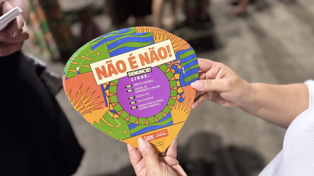 A campanha também foi bem recebida pelo público. O folião André Dantas ressaltou a importância da conscientização, especialmente entre os homens. “Acho a campanha válida pela conscientização e pela divulgação dos canais de denúncia. Às vezes, não é preciso presenciar diretamente uma situação para agir, ouvir uma fala inadequada de um amigo já é um ponto de alerta. Todo mundo precisa conhecer esses números”, comentou.