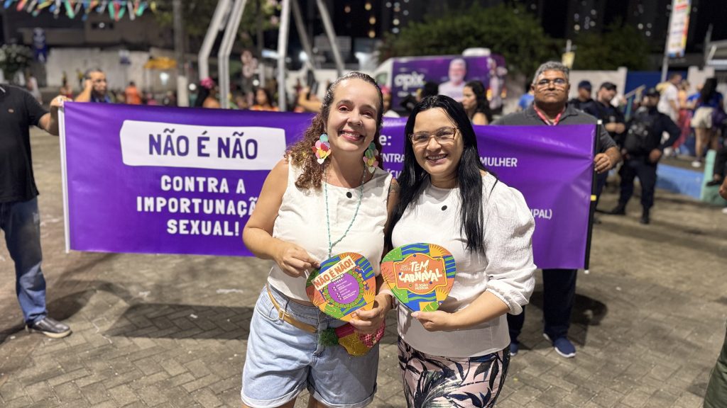 De acordo com a secretária de Políticas Públicas para as Mulheres, Juliana Dantas, a presença da campanha nos grandes eventos é fundamental para garantir que as mulheres possam vivenciar a festa com segurança e respeito. “Estivemos no bloco Muriçocas do Miramar, que completou 40 anos, levando a campanha ‘Não é Não’ para reforçar que as mulheres têm o direito de aproveitar as festas sem sofrer importunação sexual. Quando a mulher diz não, é não. O corpo dela não pode ser tocado e a vontade dela precisa ser respeitada. É também um alerta para práticas que configuram crime, como a importunação sexual, cuja pena pode variar de um a cinco anos”, destacou.
