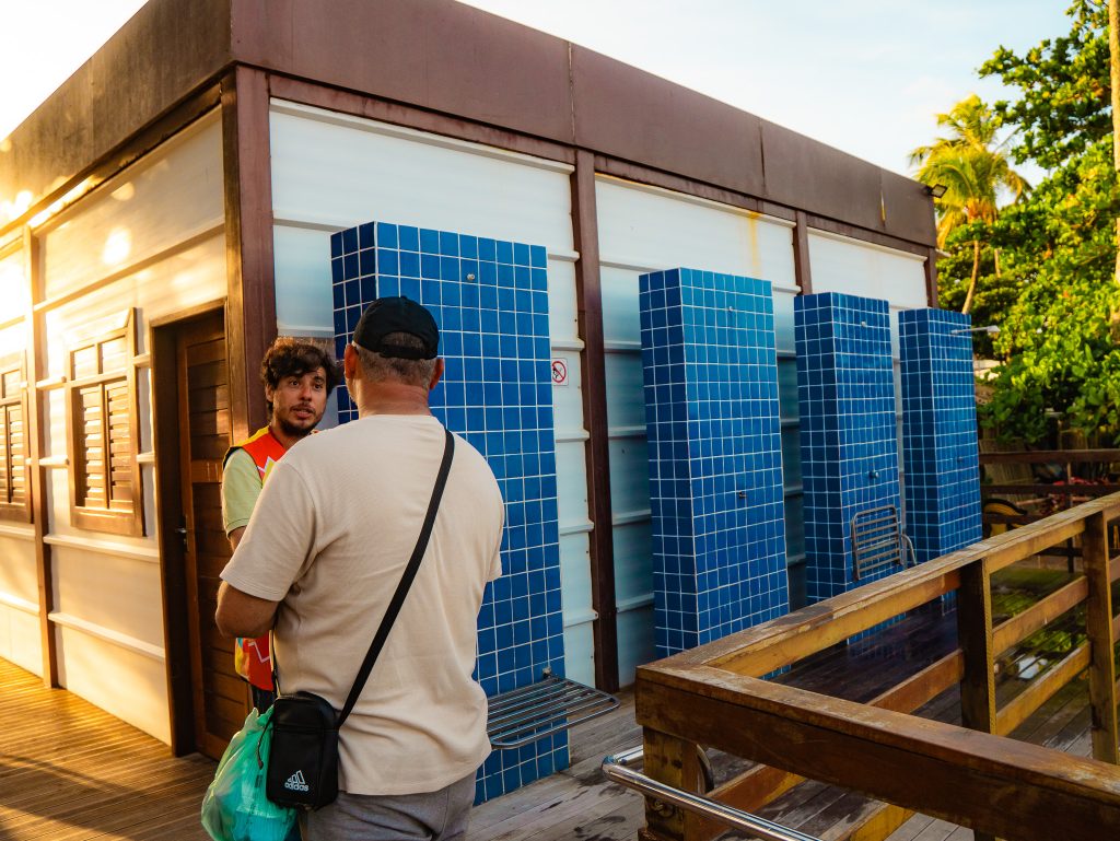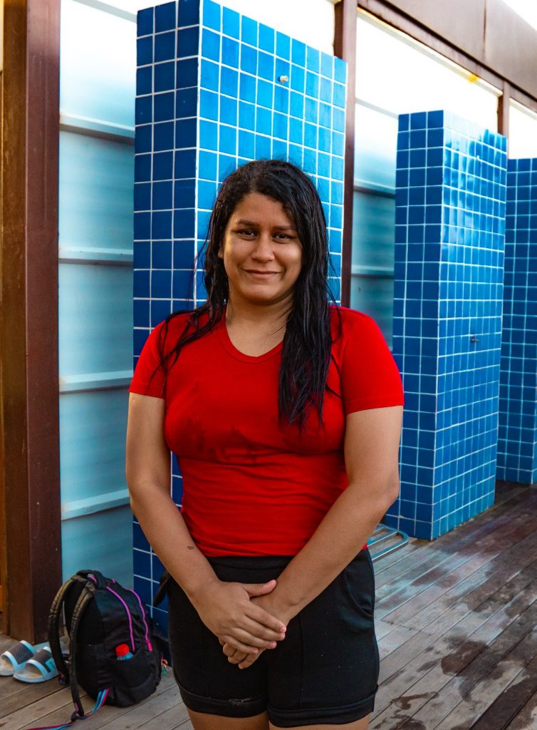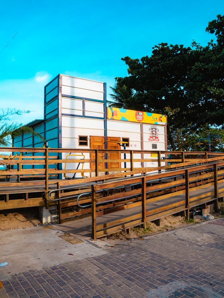 “É muito importante pensar nas pessoas que têm deficiência, que precisam de mais acessibilidade e comodidade pra tomar um banho, trocar de roupa, se exercitar. É a primeira vez que trago meu filho, e estou achando ótimo o atendimento”, declara Luana Pires, que veio com a família de Itabaiana e tem uma criança PCD.