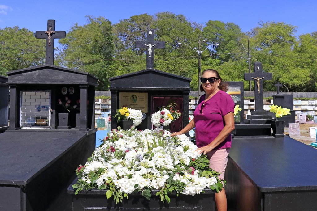 O movimento também foi intenso no cemitério de Cruz das Armas, onde a família de Raimunda Maria da Conceição, também aposentada, foi homenagear a memória dos parentes. Dona Raimunda mora no Esplanada e há 15 anos frequenta o cemitério São José todo Dia de Finados. “Nossa família vem aqui em memória de meu pai, minha mãe, uma irmã, cunhado e uma sobrinha. Compramos flores, fazemos nossas orações, acompanhamos a missa que aqui é celebrada e ainda apreciamos a beleza das árvores, dos jambeiros aqui do cemitério de Cruz das Armas”.