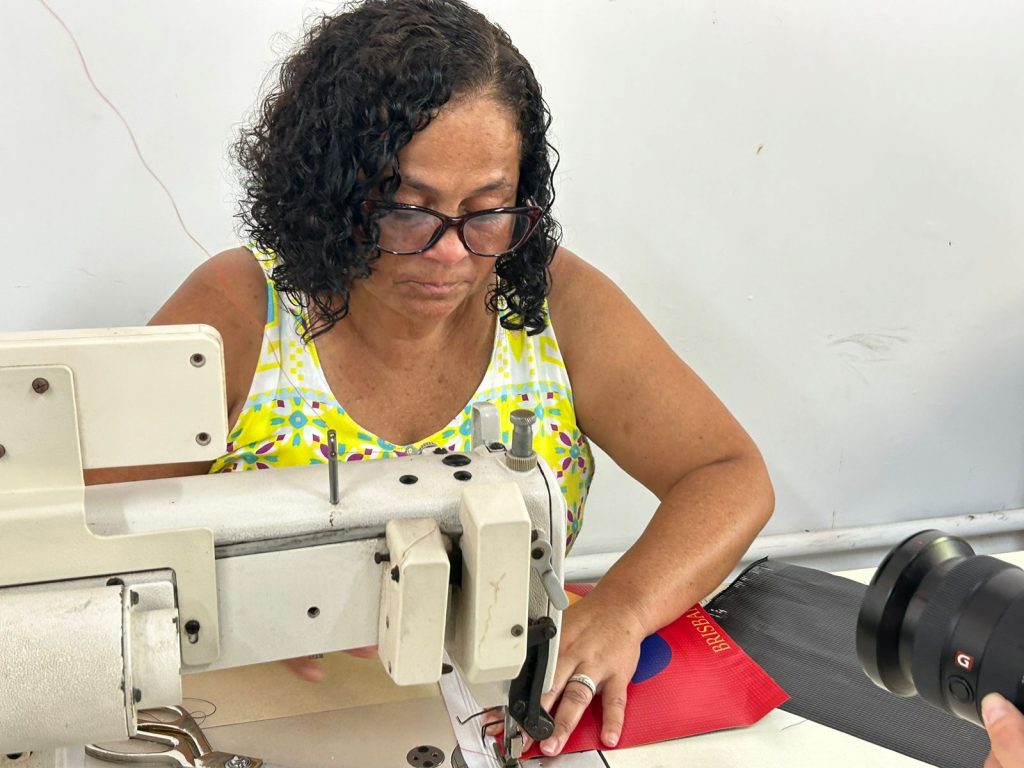 Thaís Nunes, analista de projetos de sustentabilidade do COB, esteve no Polo de Costura para conhecer o equipamento e falou sobre a parceria entre Comitê e Prefeitura. “Toda a identidade visual dos Jogos da Juventude foi feita com lonas e ficamos preocupados com a destinação desses materiais, porque infelizmente ele não é reciclável. Tivemos uma primeira conversa com a Emlur e foi sugerida a doação para o Costurando Sonhos, que poderia fazer a reutilização desses materiais e pra gente foi uma felicidade poder encontrar um novo destino, prolongar a vida útil desse material e podendo gerar renda e impactar a vida dessas mulheres de forma positiva”, destacou.