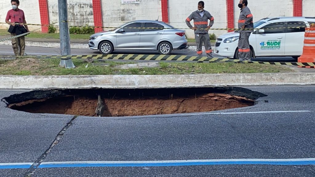 De acordo com o secretário municipal de Infraestrutura, Rubens Falcão, o incidente ocorreu pelo rompimento de uma galeria. Um veículo com dois ocupantes, que trafegava no momento do acidente, acabou sendo tragado pelo buraco – com dimensões de 8 m de profundidade, 2,5 m de largura e 5 m de extensão. “O que aconteceu foi um rompimento de uma caixa de transição na rede de galerias de águas pluviais. A caixa cedeu e tivemos esse rompimento. Graças a Deus não tivemos nenhuma vítima grave, foram apenas pequenas escoriações. Já estamos com toda a equipe mobilizada para recuperar, ou seja, fazer uma caixa nova para que possamos restabelecer a rede de drenagem e também o trânsito”, explicou.