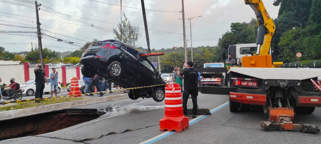 Orientações – Após o ocorrido, equipes da Semob-JP ficaram de prontidão no local para orientar os condutores e acompanhar de perto o início dos trabalhos. Por volta das 17h, o veículo atingido pelo desmoronamento do asfalto já havia sido retirado do local.