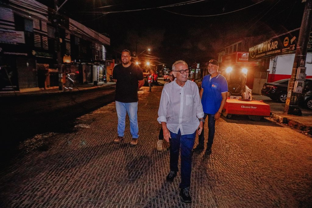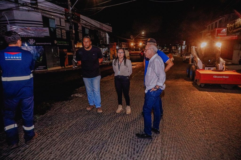 “Muito feliz em estar aqui, às 21h30, e acompanhar o andamento da pavimentação asfáltica dessa importante rua, que tem crescido muito pelo seu comércio e ainda é uma via de ligação com o bairro do Valentina. É motivo de muita alegria ver a Prefeitura cuidando da nossa cidade”, destacou o prefeito.